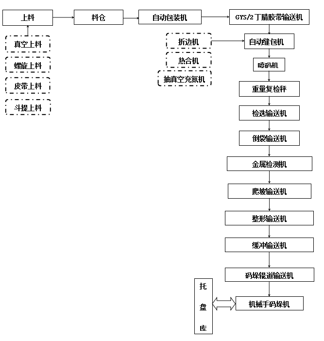適用范圍 氯化鉀、氯化鈣、片堿、苯酐、抗氧化劑、電池材料、氧化鋅、氫氧化鋁、高氯酸鉀、醫(yī)藥中間體、農(nóng)藥等粉狀、片狀、超細(xì)粉物料的包裝生產(chǎn)線
